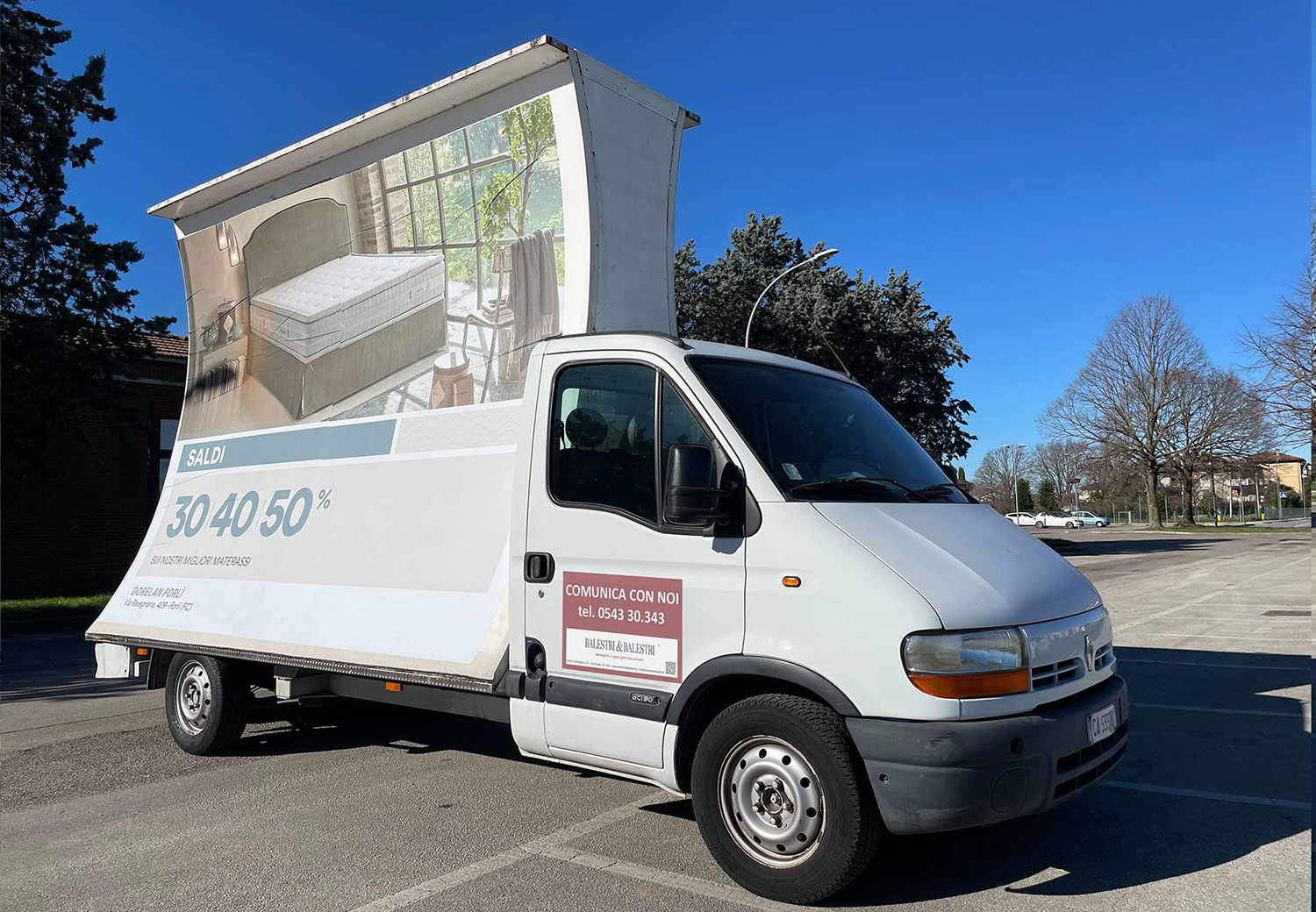 Da febbraio 2022 la Balestri & Balestri ha acquistato i camion vela 4x3 della storica azienda Graziani, inserendo all’interno dei propri media anche questa richiestissima opportunità di comunicazione.